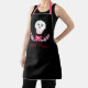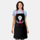 Cute and spooky black apron with a cute pink and white cartoon cupcake with x x eyes and tongue sticking out