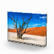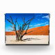 Close to Sossusvlei, Deadvlei is a clay pan characterized by dark, dead camel thorn trees contrasted against the white pan floor. The pan was formed when the Tsauchab River flooded and the abundance of water allowed camel thorn trees to grow. However, the climate changed and the sand dunes encroached on the pan, blocking the river from reaching the area. The trees are estimated to be approximately 900 years old, however they have not decomposed due to the dry climate.