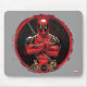 Deadpool | Here we see Deadpool standing with arms crossed in front of a painted outline of his iconic red and black emblem. Please note: This artwork is intended for ages 13+.