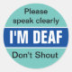 Please speak clearly, don't shout i'm deaf. This is for people who suffer from hearing loss, and it attempts to make people aware that they should speak clearly and not shout if they are to be understood.