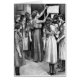 Artwork from a vintage book for teen girls. Shows a group of girls gathering around as a teacher posts a list on the wall