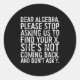Dear Algebra Please Stop Asking Us To Find Your X Classic Round Sticker