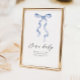 Create a heartwarming touch at your baby shower with our "Dear Baby" advice table sign. This modern design features a charming blue bow, adding a touch of elegance to your celebration. Invite your guests to share their wisdom, love, and blessings for the little one, creating a treasured keepsake that the baby will cherish for years to come. Perfect for any baby shower theme, this sign is a delightful way to capture the joy and anticipation of welcoming a new life.