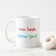 "dear Santa, define "good"" Funny, humour, fun colourful script typography, Santa quote / joke, custom, christmas holiday home office tea / coffee / cocoa mug. Makes a fun Christmas holiday gift for family and friends.