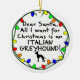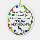 Dear Santa, All I want for Christmas is an Italian Greyhound! Fun holiday dog lover ornaments and other items are ringed in a string of colourful Xmas lights, and a small drawing of the dog breed by a child. Extremely cute, perfect to include your Italian Greyhound in the holiday season.