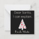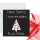 These are cute 2.5"x2.5" black mini holiday cards with a white mid-century Christmas tree decorated in red and black. The "Dear Santa, I can explain." text, the calligraphy lettered name and back of the card are in a linen color. The back is blank for adding a personalized touch. Ideal winter break cards for teenagers and college students, gift enclosure cards, note cards for work or family and friends. Easily change the text and name to make it yours using the Template provided. NOTE: these are too small to mail in the US, minimum envelope size accepted by the USPS is 3.5"x5". Made and Printed in the USA.