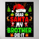 Dear Santa My Brother Did It Funny Christmas Boys Poster
