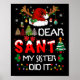 Dear Santa My Sister Did It Christmas Pajamas Poster