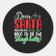 Dear Santa Naughty But Nice To All The Sleigh Bell Classic Round Sticker