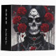 A grey and white death's head with vivid red roses and hearts, and silver chains makes the perfect Goth binder. Heavy metal enthusiasts will love this one!
