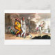 Death and the Circus postcard : This is one of a series of vintage art/ Illustrations from: The English Dance of Death book published in 1816, art by Thomas Rowlandson, poetry, by William Combe circa 1815. Here you have Death presenting the hourglass to what appear to be a troup of preformers, perhaps a circus troupe or playwrights? you have another couple wandering away toward ships in port in the background. . The Dance of Death, or Danse Macabre art/ genre stylised Deaths approach of people of all stations and walks of life, reaffirming that Death is the great leveler/equalizer. They were produced as an artistic genre of religious works from the 1400s thru the 1800s, period to remind people of the fragility of their lives and how vain are the glories/pleasures of earthly life