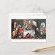 Death and the Fox Hunt postcard: This is one of a series of vintage art/ Illustrations from: The English Dance of Death book published in 1816,art by Thomas Rowlandson circa 1815. Here you have Death pulling up the tablecloth that a cowering gentleman is hiding under in a grand hall. by the dress of the riders and the horses and hounds all around it appears he was in the midst of a fox hunt when death came calling but has managed to temporarily hide in his estate. A pretty unusual rendition of The Dance of Death, or Danse Macabre art/ genre stylised Deaths approach of people of all stations and walks of life, reaffirming that Death is the great leveler/equalizer. They were produced as an artistic genre of religious works from the 1400s thru the 1800s, period to remind people of the fragility of their lives and how vain are the glories/pleasures of earthly life