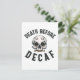 Show your love of coffee in style! This design features a unique skull with the phrase "Death Before Decaf," perfect for those who prefer their coffee to be caffeinated.