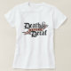 Super cute coffee lovers tee features "Death Before Decaf" in black gothic typography with a cute skull illustration and a peachy pink ribbon banner.
