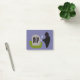 This awesome pad of post it notes features an image of the Grim Reaper, also known as Death, created using vectors. He stands menacingly in a cemetery holding his scythe in his bony white hand. His sunken purple eyes and demonic grin are only just visible underneath his black cloak. In the background there is a gravestone with RIP painted on it in creepy black.