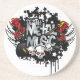 I'm not sure how much moisture these will soak up, haven't had a chance to try them out, but they look good and I like the cork backing. The printing is fine ~ and really looks cool with an artisan's hand made "Hurricane Martini" glass sitting on top of my painting (on the coaster) in my studio.
