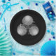 A biohazard symbol done in grey tone. The inner circle was replaced with a black and white strand. Three black skulls were placed at the intersection of the symbol.