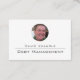 Debt Management business card design with photograph of card holder. Bold and clear typographic design business cards for a Company or Business. Designed to convey your professionalism in your business. Add your head and shoulders photo or logo.
