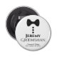 Cet ouvre-bouteille amusant fait un merveilleux cadeau ou une faveur pour vos groomsmen. Dispose d'un design mignon et amusant avec une cravate noire et trois boutons noirs ressemblant à un smoking. Le texte dit "groomsman" avec une place pour son nom, les noms du couple, et la date du mariage. Excellente façon de le remercier d'avoir fait partie de votre fête de mariage.