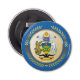 Le sceau national ou les armoiries des Îles Salomon, est placé sur un arrière - plan bleu. L'emblème est imprégné d'une fausse forme de cercle doré, qui à son tour est niché au milieu d'une fausse couronne de laurier d'or.