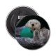 Rond, ouvre-bouteille magnétique qui présente l'image photo d'une paire de loutres de mer mignonnes jouant avec un jouet à boule.