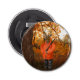 Grosse balle en chasseur orange et vêtements de camouflage avec un fusil dans les bois d'automne.