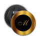 Cet ouvre-bouteille chic pour les faveurs de mariage présente votre monogramme en fausse calligraphie or sur un arrière - plan noir et encadré de faux or brillant. Conçu par Susan Coffey.