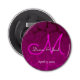 Réception de mariage fuchsia rose chaud monogramme floral blanc personnalisé ouvre-bouteille ronde. Chic, élégant, moderne, tendance, classe, design, belle motif métallique succulente. Copyright de l'image Marg Seregelyi Photography.
