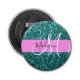 La parties scintillant rose glam et verte turquoise scintille le nom de monogramme blanc et l'ouvre-bouteille initiale. Votre nom personnalisé et votre monogramme sont écrits dans un élégant script écrit à la main avec un arrière - plan rose. Vous pouvez modifier la couleur du texte, le style et la taille de police à l'aide de l'option personnaliser. Un cadeau d'anniversaire ou de Noël parfait !