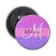 La parties scintillant de sirène rose, lilas et rose brille le nom monogramme du dégradé et l'ouvre-bouteille initial. Votre nom personnalisé et votre monogramme sont écrits dans un élégant script écrit à la main avec un arrière - plan rose. Un cadeau d'anniversaire ou de Noël parfait !