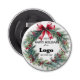 Custom "Happy Holidays" bottle opener for clients personalized with your business logo, the year, a festive wreath, and an elegant red bow. Company promotional supplies for the Holidays, you can order in bulk for your employees or as branding and marketing supplies to promote your store to customers.