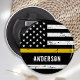 Ouvert-bouteille de la ligne or mince - Etats-Unis design de drapeau américain dans les couleurs du drapeau Dispatcher, design en détresse. Parfait pour tous les régulateurs 911, les régulateurs de police et les régulateurs d'incendie. Personnaliser avec le nom des répartiteurs.. Ce mince porte - clé de ligne d'or est parfait pour une fête de retraite de répartiteur faveurs, répartiteur merci cadeau. DROIT D'AUTEUR © 2020 Judy Burrows, Black Dog Art - Tous droits réservés. Drapeau mince Gold Line Dispatcher Bouteille personnalisée