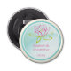 Mariage faveur gardienne, personnaliser avec le nom de la mariée et des mariés et leur date de mariage. Un contour de fleur de lotus / nénuphar. Les pétales en rose et les feuilles en vert. Un cercle vert pâle entoure vos infos mariages. Élégant et joli.