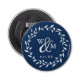 Élégants ouvre-bouteilles bouton rond floral bleu marine avec votre monogramme et date. Idée parfaite pour les cadeaux de mariage ou les cadeaux pour les invités pour toutes occasions.