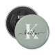 Ce simple et élégant ouvre-bouteille vert sauge avec votre prénom dans une police de script tendance en noir et votre première initiale dans une police casquette moderne en blanc est parfait pour vous. C'est design, tendance et pourtant très classique. Il sera très pratique quand vous avez besoin de sauter un couvercle d'un verre. Trouvez un couple pour votre coin cuisine et bar.