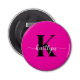 Ce simple et élégant ouvre-bouteille rose chaud avec votre prénom dans une police de script tendance en blanc et votre première initiale dans une police casquette moderne en noir est parfait pour vous. C'est design, tendance et pourtant très classique. Il sera très pratique quand vous avez besoin de sauter un couvercle d'un verre. Trouvez un couple pour votre coin cuisine et bar.
