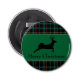 Tartan noir, vert et rouge avec bande verte festive et silhouette de rennes sur ouvre-bouteille magnétique.