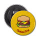 Illustration de dessin animé Cheeseburger. Les aliments indésirables entourent les icônes jaune motif arrière - plan. Texte personnalisé.