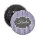 Bouteilles ouvertes avec une Bouteille Personnalisée Purple Chevron. Le design d'ouvre-bouteilles comprend un arrière - plan de chevron violet et une étiquette grise ornée pour personnaliser avec votre nom et monogramme. Autres articles disponibles avec cette conception aussi. Contactez-moi directement pour obtenir de l'aide sur la personnalisation.