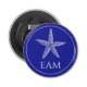 Ce joli ouvre-bouteille rond monogrammé présente une étoile de mer blanche sur un arrière - plan de bleu marine classique. Personnalisez le monogramme avec votre choix d'initiales. Favorise la fête monogrammed !
