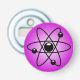 Image thématique scientifique. Image circulaire avec le symbole de l'atome à l'intérieur. Un arrière - plan rose contraste avec le symbole noir. Une image funky pour les passionnés de geeks et de sciences.