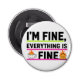 Meet the official mood of the modern era! This viral "I'M FINE, EVERYTHING IS FINE" sticker perfectly captures that feeling when you're smiling through the chaos. With a coffee cup on fire and a house burning down, it’s the ultimate expression of managing peak stress with a straight face.