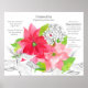 A botanical themed poster print featuring the birth month flowers for December, poinsettia and narcissus, illustrated with pencil and watercolor. Included are the birth stones, some fun personality characteristics for those born in December and some symbols of the flowers from the Victorian Language of Flowers.