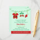 Invite friends and family over for a Christmas baby shower with this cute invitation! It has a little Santa baby outfit hanging over the Christmas mistletoe decorations. The outfit includes the red baby creeper with black belt, a pair of shoes, and a red hat. Personalize easily with your party details.