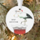Design d'aquarelle douce avec cigogne dans un chapeau de Père Noël debout sur une cheminée, sur le point de livrer un bébé. Modifiez le texte pour customiser pour le futur et le futur.