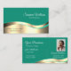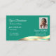 Decent Dark Teal Wavy Gold Decor with Photo Classy Business Card