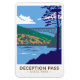 Deception Pass State Park artwork design. The park connects Skagit Bay, part of Puget Sound, with the Strait of Juan de Fuca. A pair of bridges known collectively as Deception Pass Bridge cross Deception Pass.