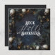 Deck your holiday season with a delightfully dark twist using this gothic Christmas card. Featuring a haunting wreath of skulls, pine cones, and evergreen branches illuminated by warm golden lights against a mysterious dark background. The elegant typography playfully transforms the classic 'Deck the Halls' into 'Deck the Halls with Darkness' - perfect for those who prefer their holiday cheer with a side of macabre charm. Each card includes a customizable message on the back, allowing you to craft your own darkly festive greeting. Ideal for gothic holiday enthusiasts, alternative Christmas celebrations, or anyone who loves to embrace both the light and shadow of the season.