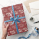 This elegant Christmas-themed wrapping paper features a modern non-photo design with a vibrant red background and pale green typography. Suitable for both family members and corporate associates.