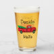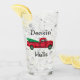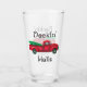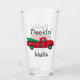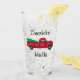 This Deckin Halls Red Christmas Tree Truck Drinking Glass features a print of my original watercolor painting of an old red truck with a Christmas